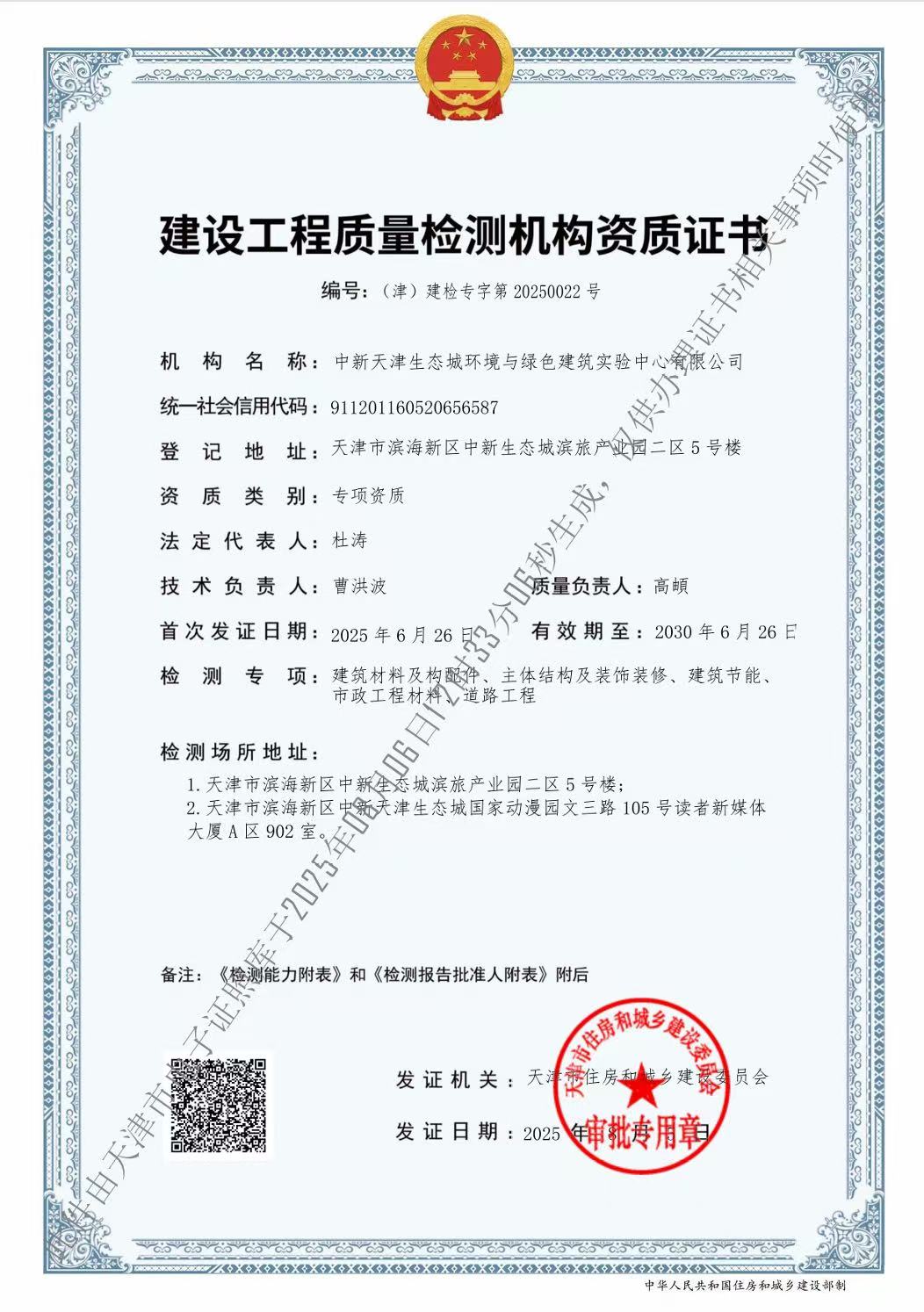 中新天津生態(tài)城環(huán)境與綠色建筑實驗中心有限公司